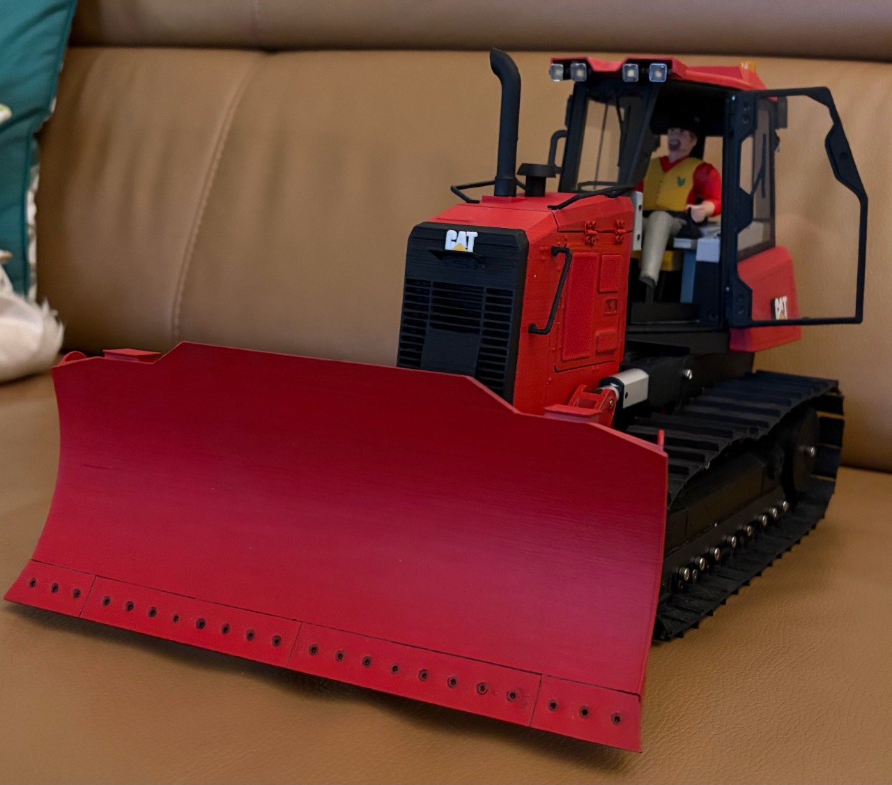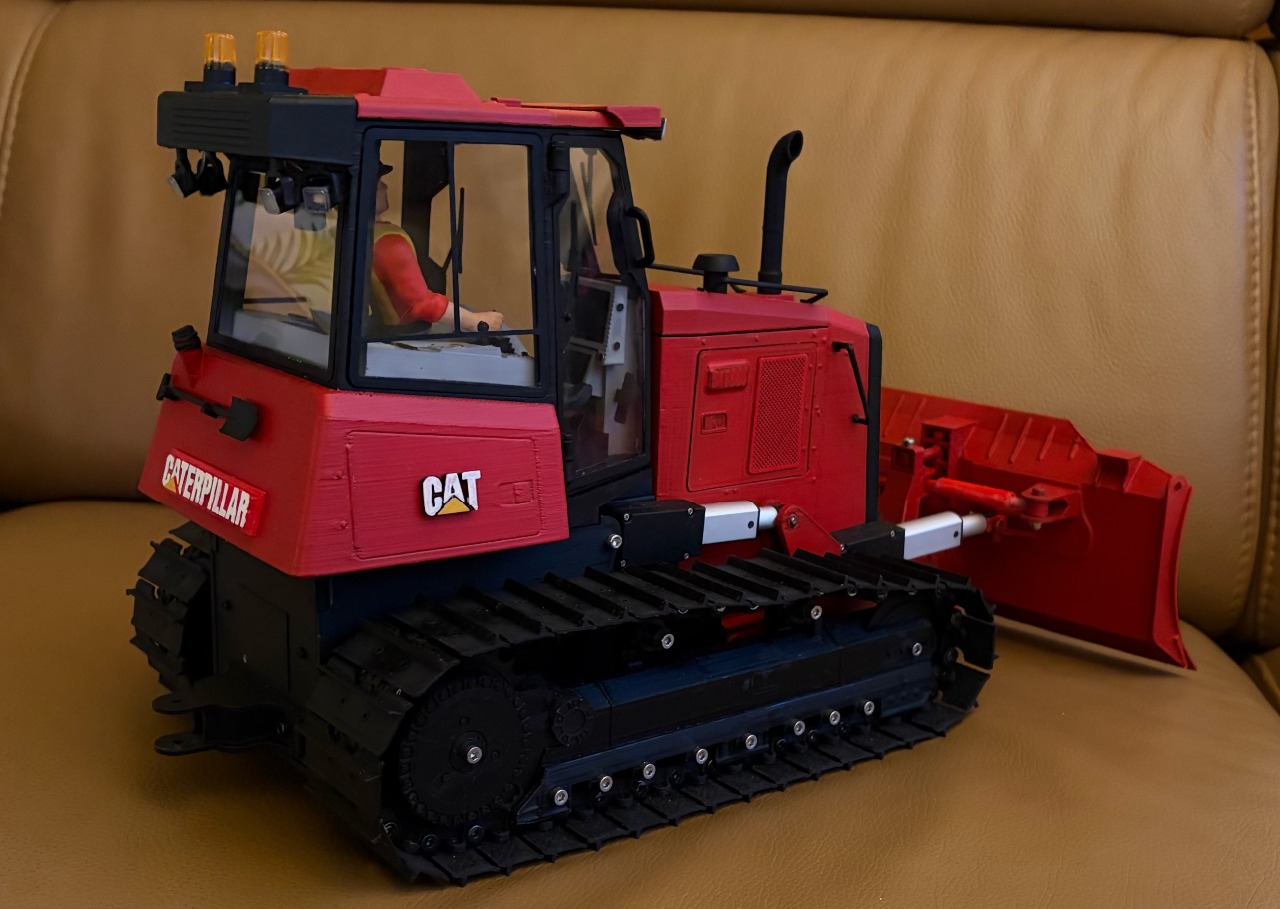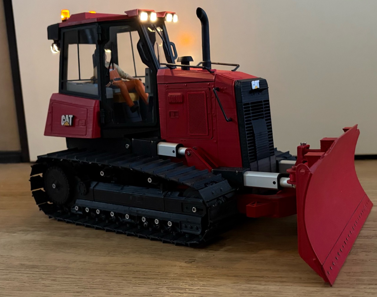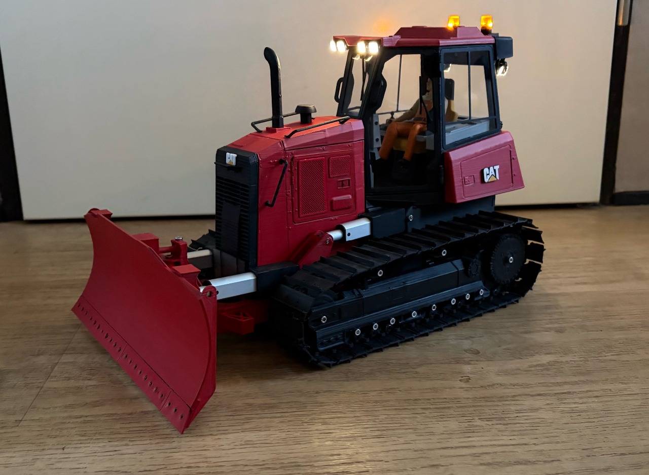 Een 3D geprint model van en CAT D4 buldozer in schaal 1:14